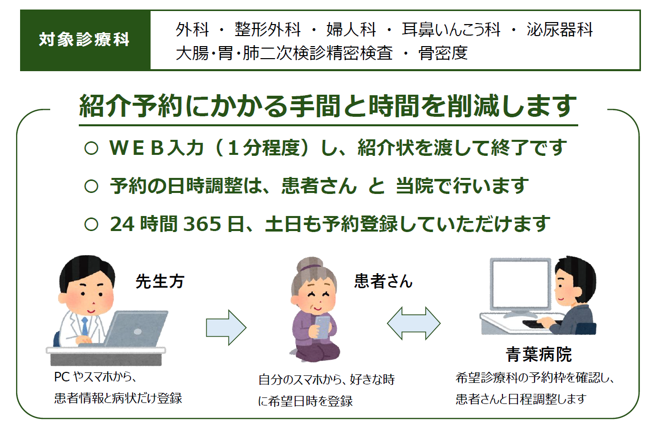 ※WEB予約サービスには、メドピア株式会社の病診連携ツール「やくばと※」を利用します